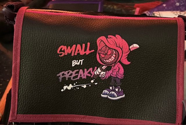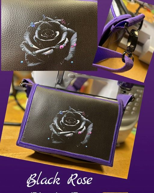 kleine Tasche, mit beschichteter Leinwand und kleiner aufgesetzter Innentasche. Auswechselbares Gurtband