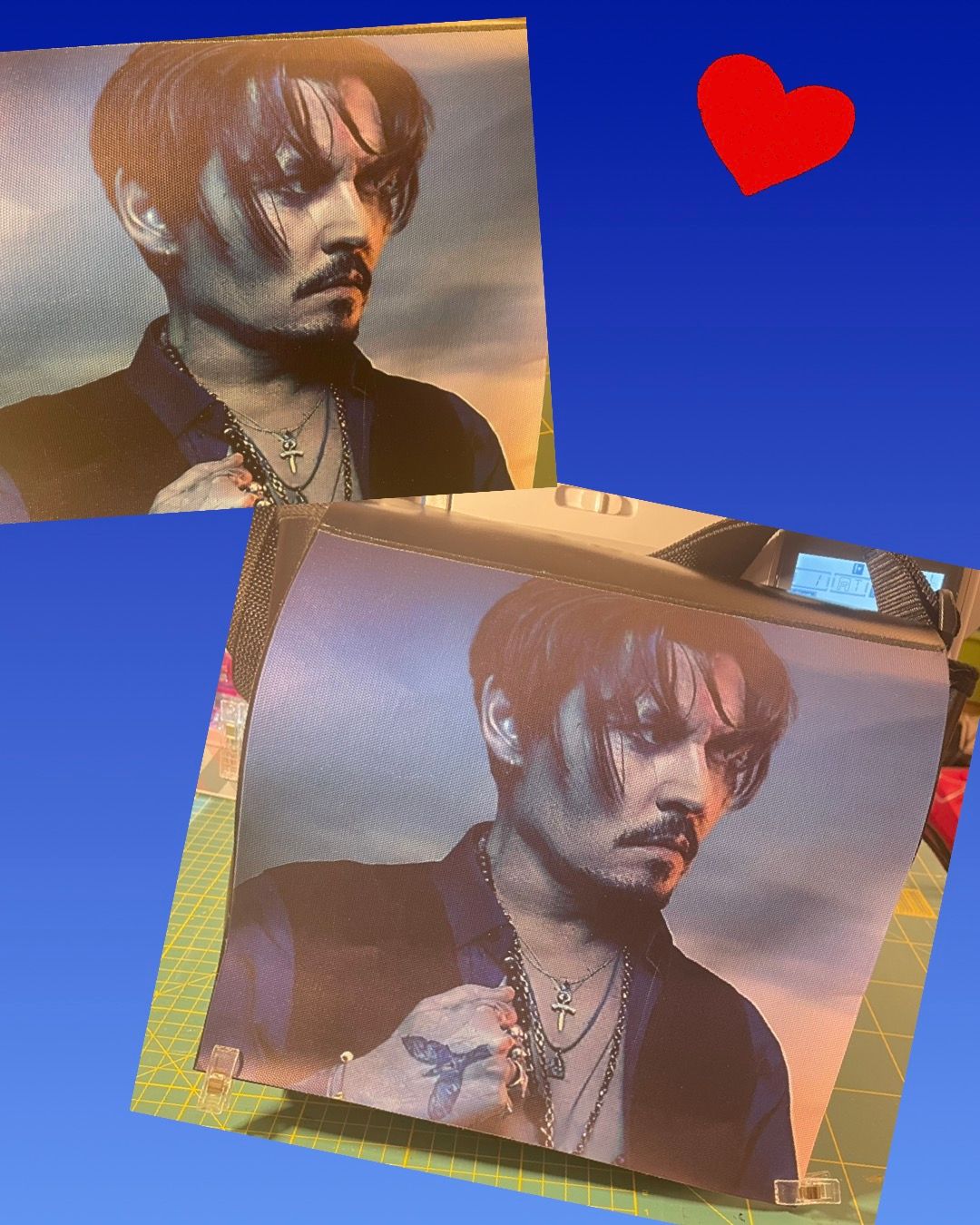 Mittlere Tasche, mit beschichteter Leinwand und kleiner aufgesetzter Innentasche. Gurtband mit Love-Schriftzug *verkauft*